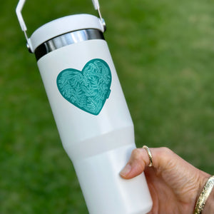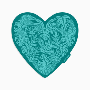 This heart-shaped sticker features hand-drawn tropical ferns and monstera is the perfect sticker for any plant lover. The soothing blue and green color tones add a touch of serenity to your water bottles, laptops, or any personal space.... like a breath of fresh outdoor air wherever it's placed.